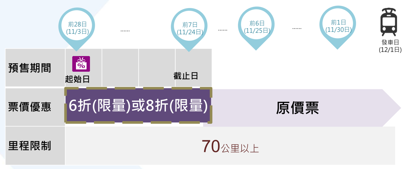 台鐵早鳥票 適用45列自強號班次一覽 里程計算表 提早28天訂 享6折優惠 吃貨瑪莉